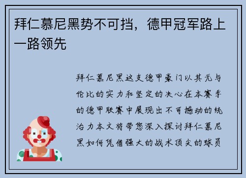 拜仁慕尼黑势不可挡,德甲冠军路上一路领先